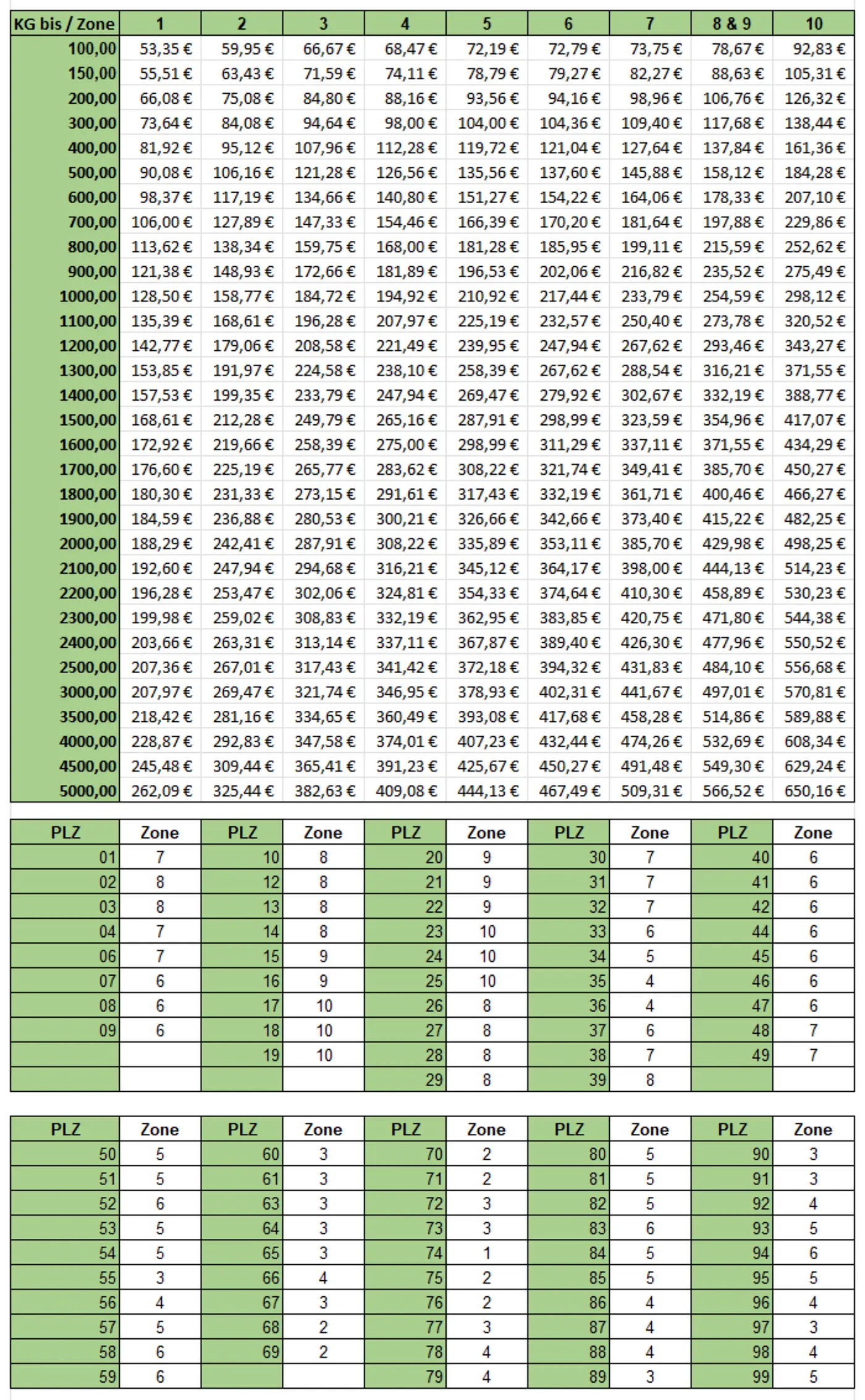 - bis 20 kg: 6,90 €